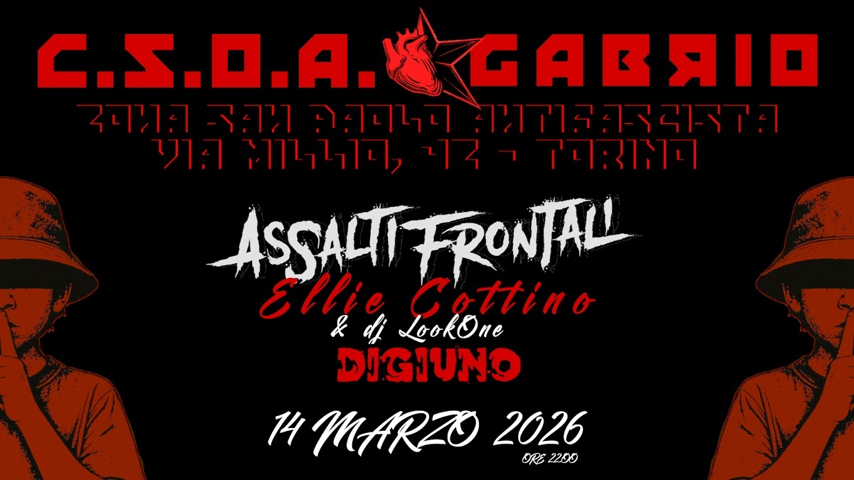 Colonna sonora di molti cortei, gli Assalti frontali suonano al csoa Gabrio insieme ad Ellie Cottino, parte integrante della family Assalti e Dj LookOne.