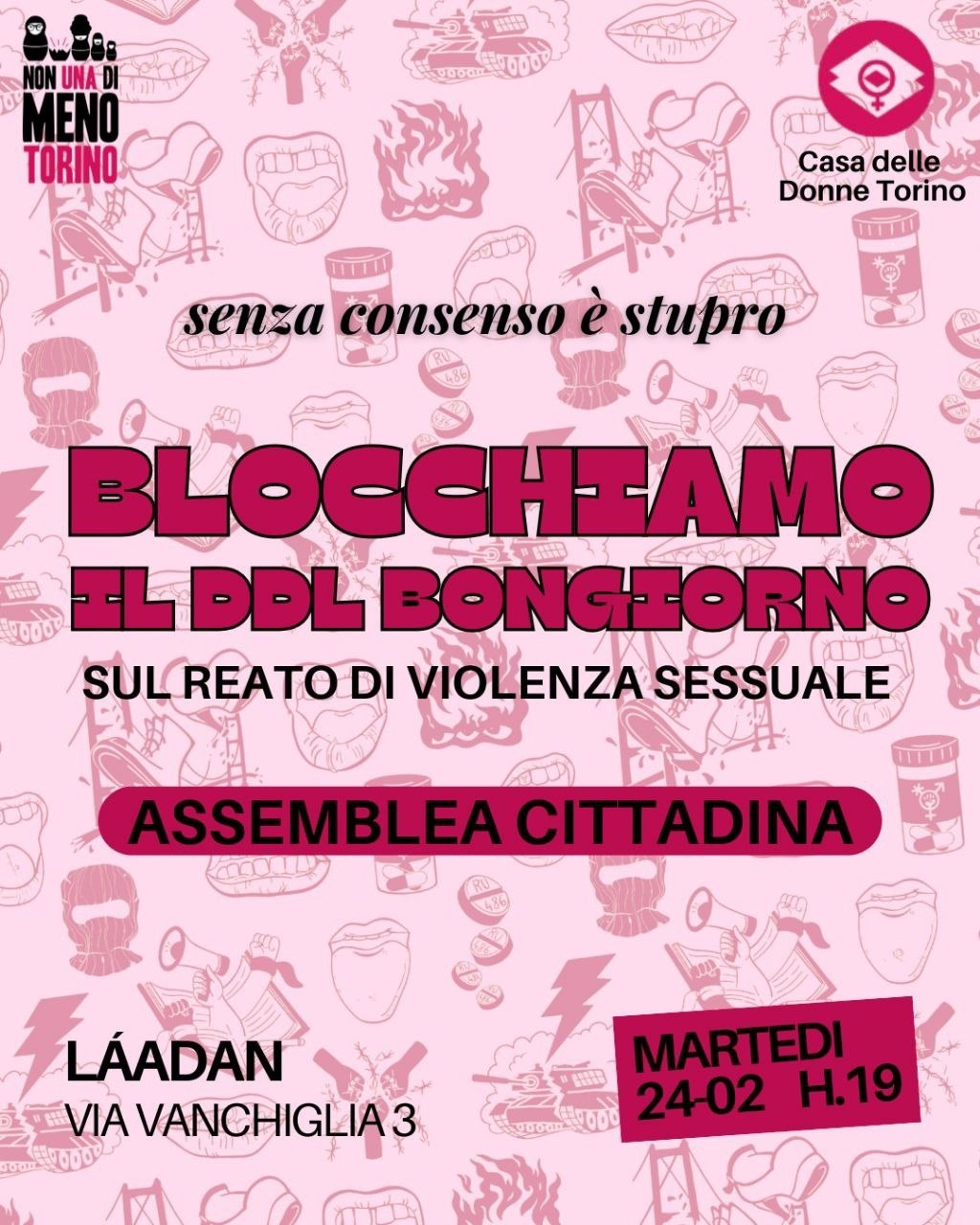 Dopo la manifestazione del 15 febbraio che ci ha vistə scendere in piazza in migliaia in tutta Italia, ci ritroviamo in un'assemblea cittadina, aperta a tutte le persone, i collettivi, le associazioni, i sindacati, i gruppi che vogliono costruire insieme un'opposizione dal basso al DDL Bongiorno.