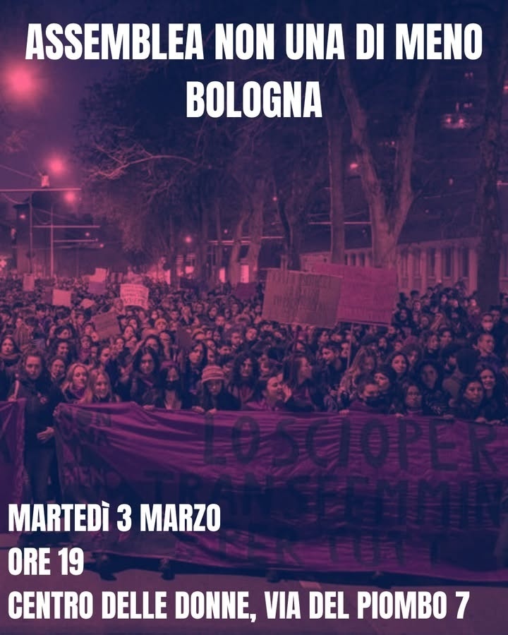 L'ordine del giorno sarà incentrato sull'organizzazione del week-end fuksia: la festa di autofinanziamento di sabato 7 marzo, la piazza di domenica 8 e lo sciopero e corteo del 9.