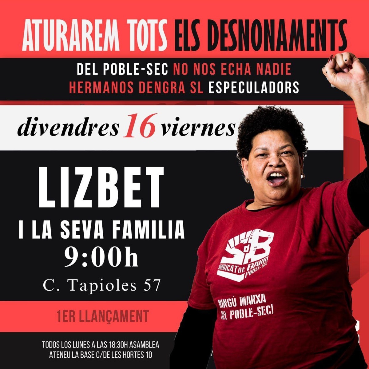 de totes amb el Sindicat de barri. El 2020 vam alliberar el seu pis de les mans de Cerberus. Hermanos Dengra S.L. el va compar per especular, es nega a fer un lloguer i aquest 16 de gener la vol desnonar.