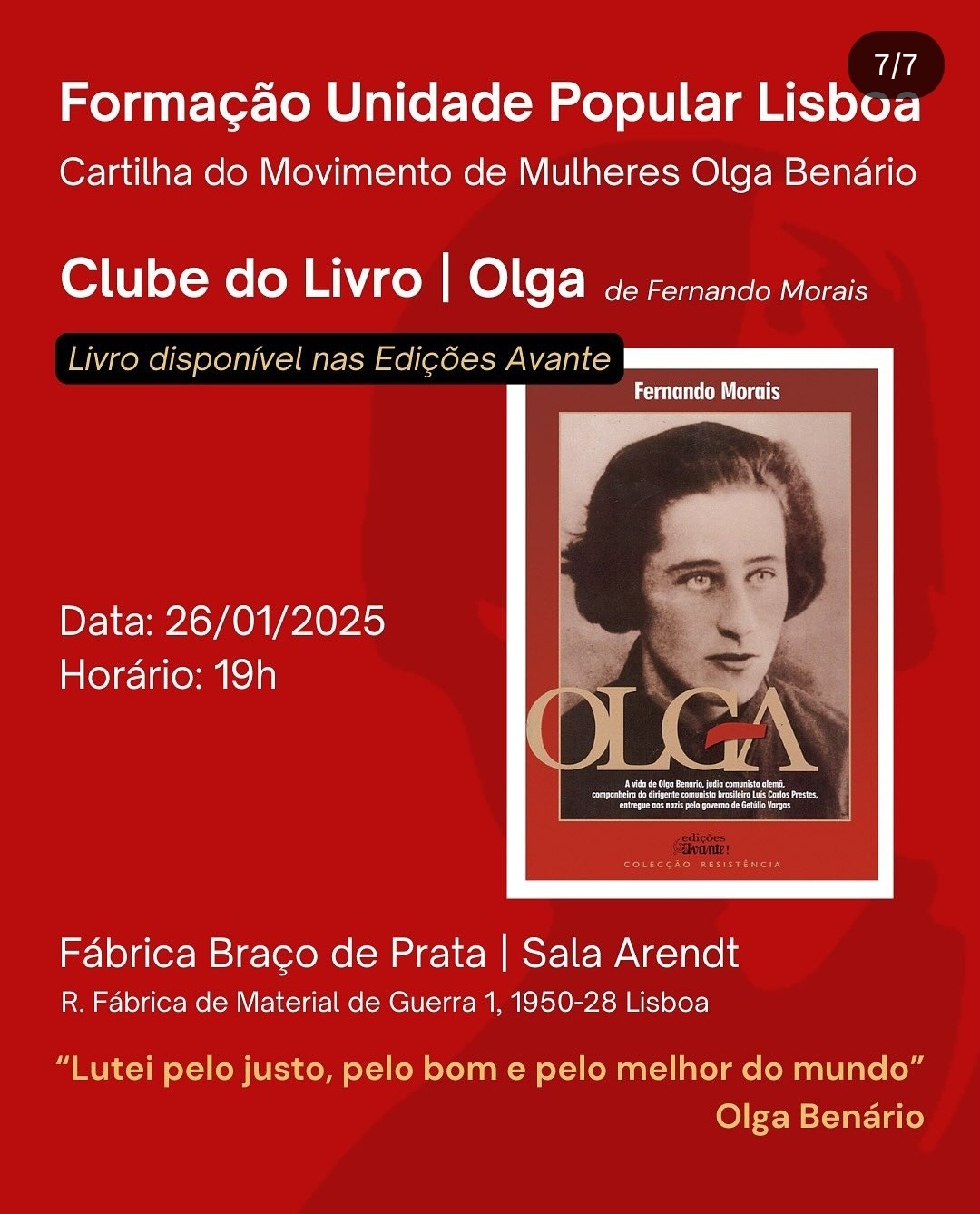 https://eventos.coletivos.org/event/clube-do-livro-olga-fernando-morais-movimento-de-mulheres-olga-benarioRua da Fábrica de Material de Guerra, 1 1950-128 Lisboa