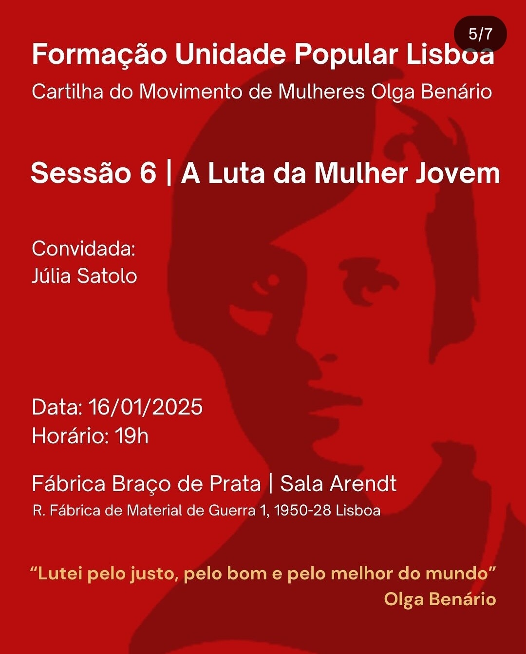 https://eventos.coletivos.org/event/formacao-feminista-a-luta-da-mulher-jovem-movimento-de-mulheres-olga-benarioR. Fábrica de Material de Guerra 1, 1950-128 Lisboa