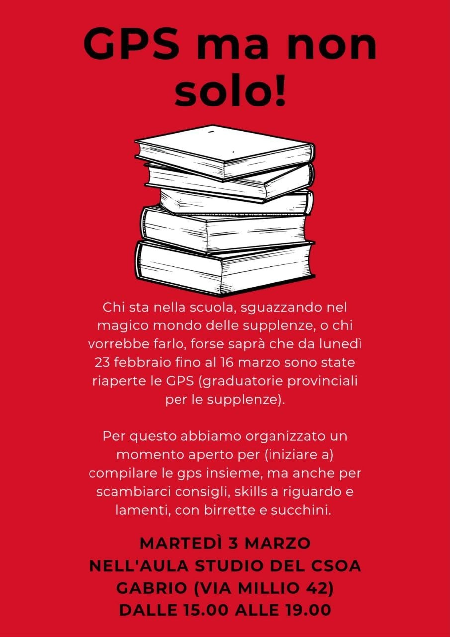 Martedì 3 marzo nell'aula studio del CSOA GABRIO (Via Millio 42) dalle 15.00 alle 19.00
