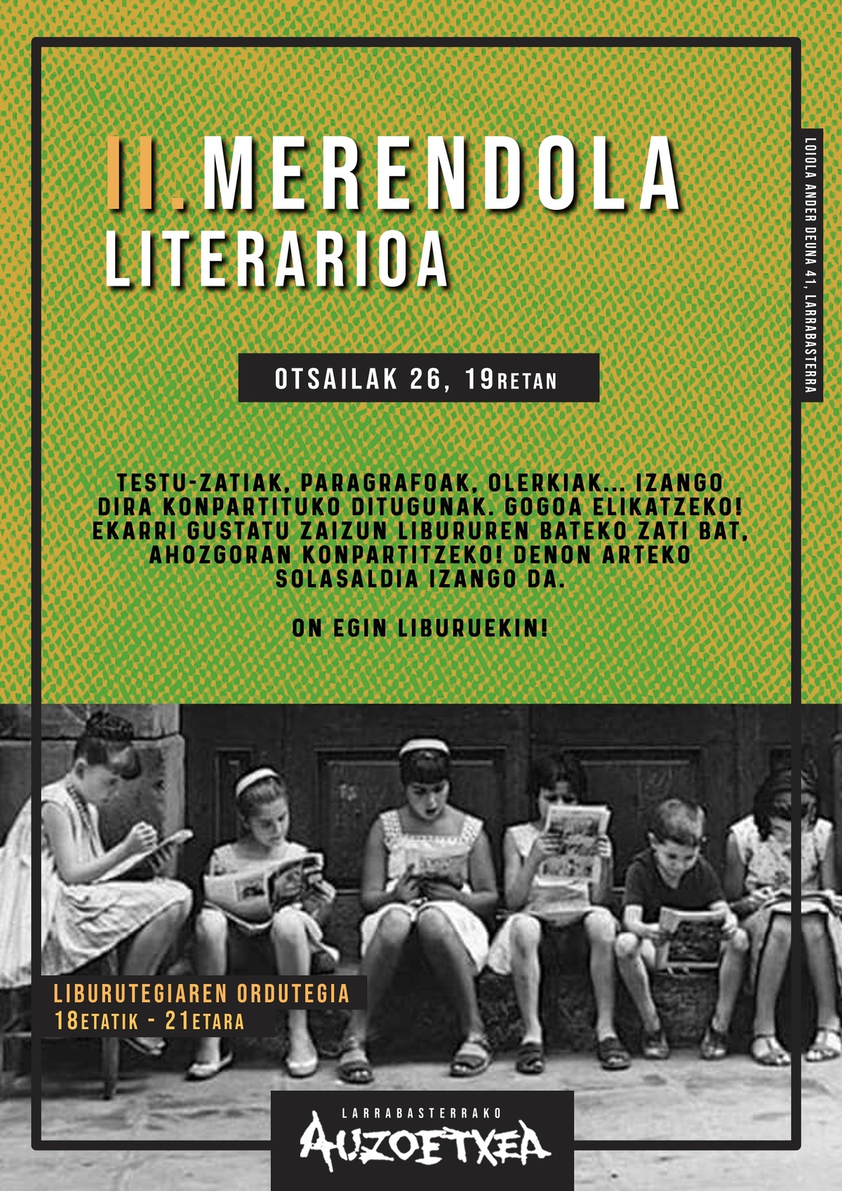 https://www.lubakiagenda.net/event/ii-merendola-literarioaLoiola Ander deuna 41, Larrabasterra