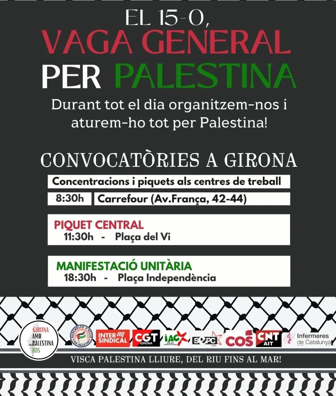 Hem de ser moltes! Tothom a la vaga!! Aturem-ho i bloquegem-ho tot per una Palestina lliure del Riu al Mar!